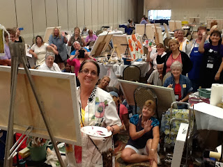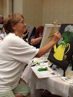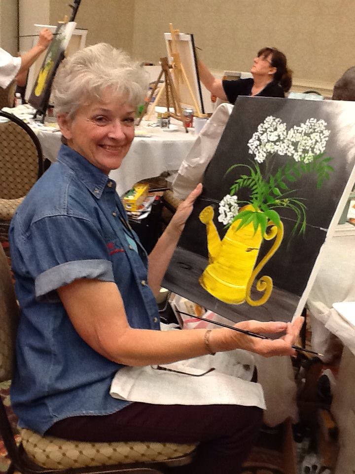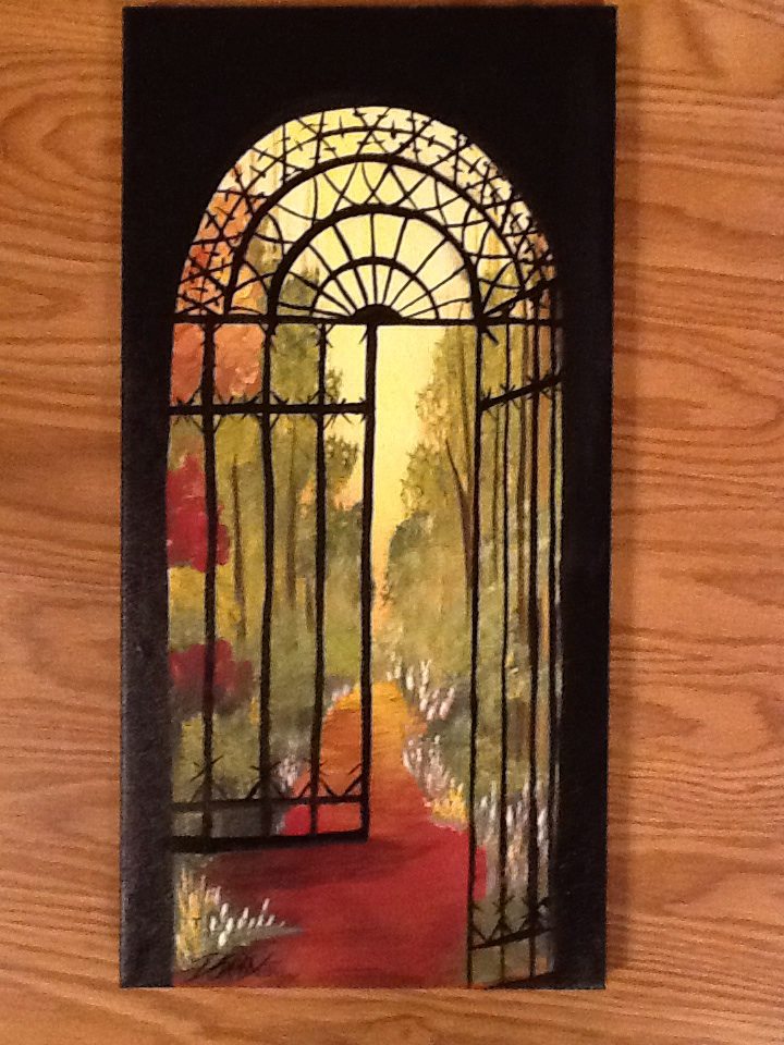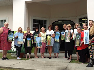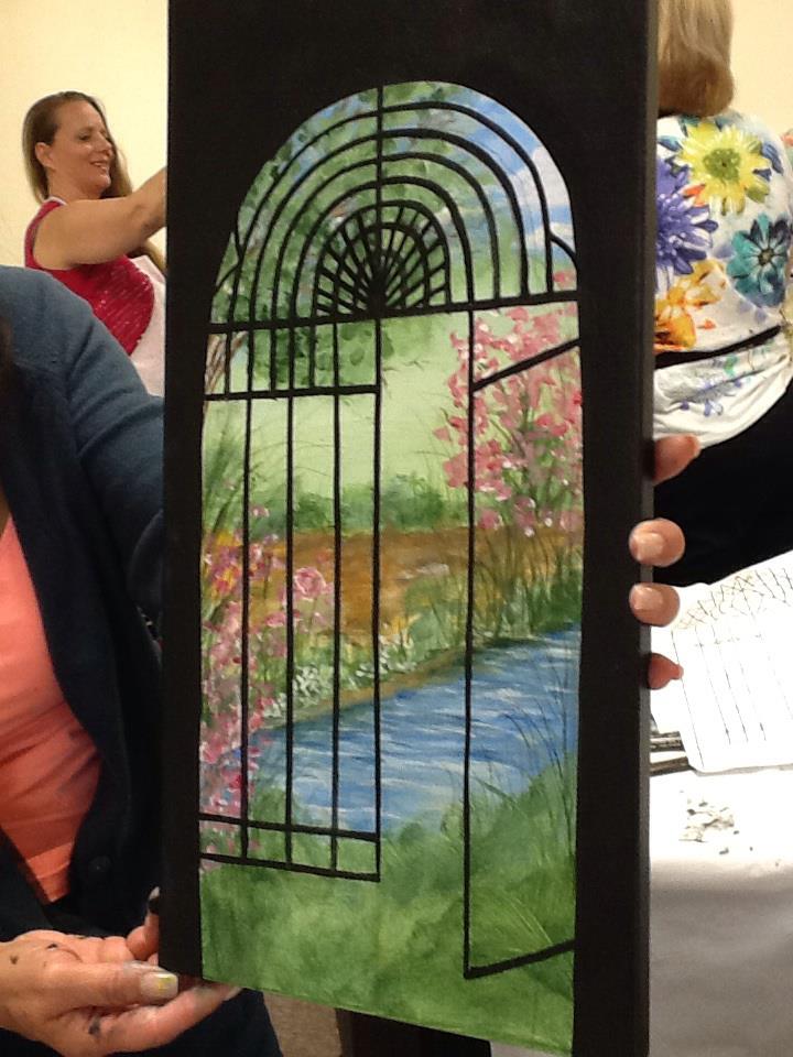 Elite Day: We painted this gated garden scene at my Elite Day at Dewberry U Art Center in Clermont on Monday. I encouraged the ladies to create their own scene and change up the black gate to white if they wanted. They really went after making the painting their own! Love what they came up with.
